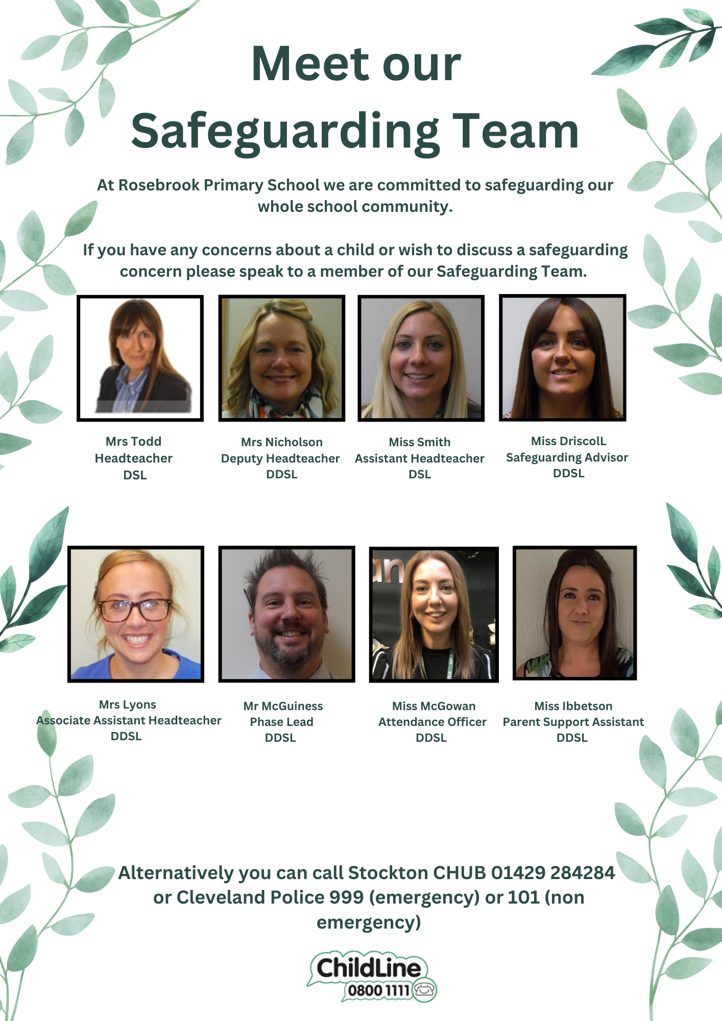 - These staff in school are Leanne Todd (Headteacher) Hayley Smith (Assistant Headteacher) Fiona Nicholson (Deputy Headteacher) Gemma Driscoll (Safeguarding Advisor) Donna Lyons (Associate Assistant Headteacher) Matthew McGuiness (Phase Leader).